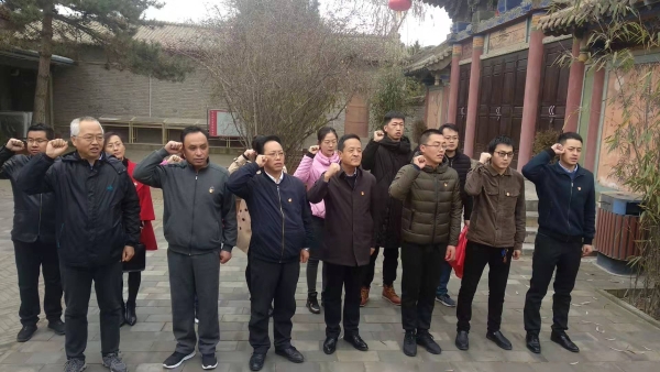 参观结束后,全体党员神情庄重、精神饱满,高举右拳,面向鲜红的党旗重温入党誓词。庄严的誓词使每一个人的心灵再一次得到了净化和洗礼,进一步增强了为人民服务的光荣感、责任感和使命感。