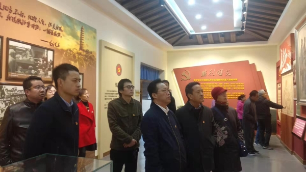 在纪念馆前,首先向毛泽东、周恩来等老一辈无产阶级革命家浮雕敬献花篮,向为中国人民解放事业英勇献身的烈士鞠躬致敬,缅怀革命先烈,寄托无限哀思。随后,跟随讲解员的脚步,大家怀着敬仰之情来到纪念馆内,聆听一桩桩感人肺腑的战斗故事,目睹一处处革命遗迹、一件件珍贵文物、一张张图片资料,近距离感受了老一辈革命家不忘初心、无私奉献、不怕牺牲的革命精神和爱国情怀。