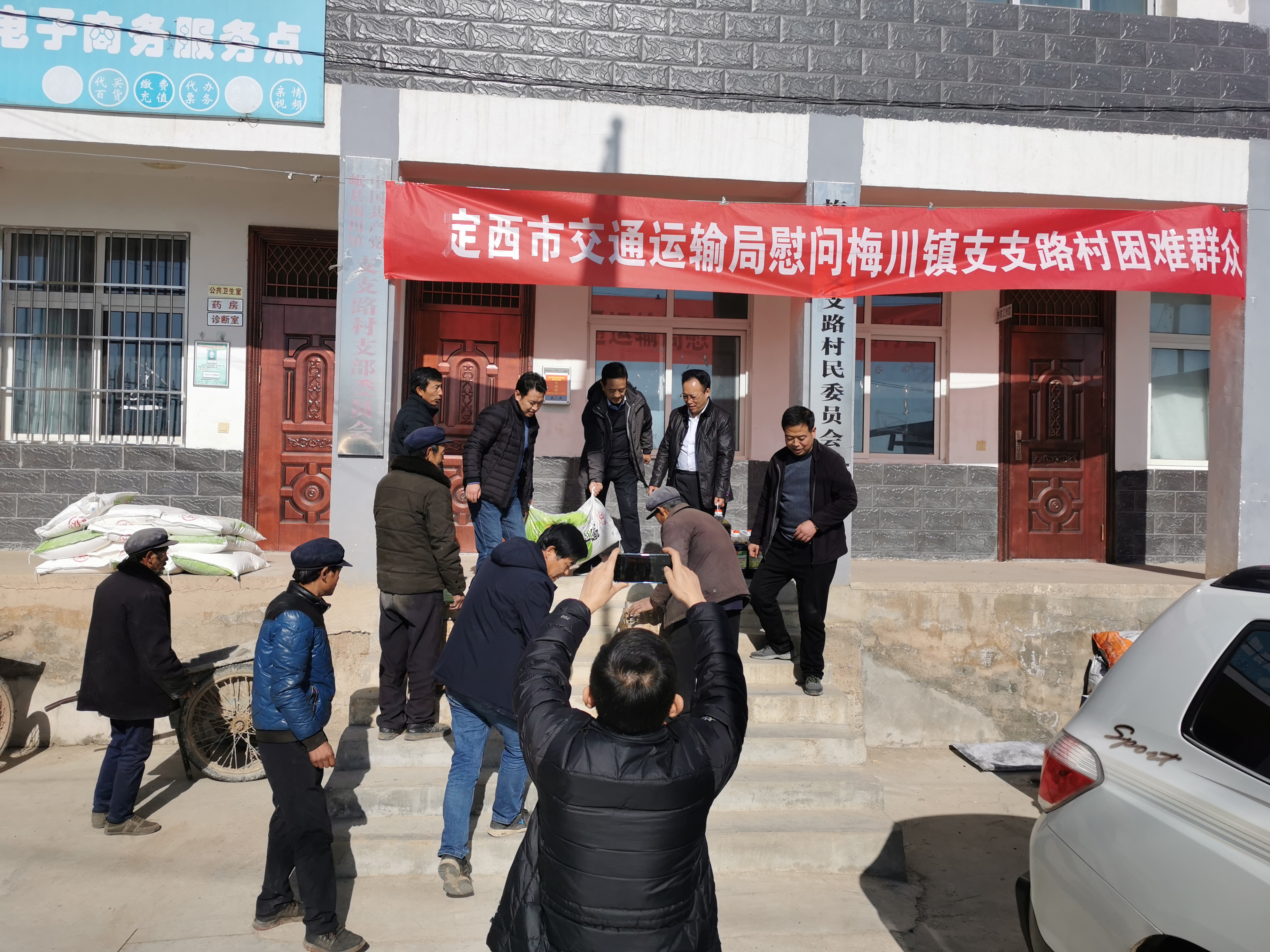 春节前,市交通运输局驻村帮扶工作分管领导带领局机关部分党员干部,深入岷县梅川镇支支路村、康家村专程开展帮扶村困难群众节前慰问活动,实地慰问生活困难群众25户,发放慰问面粉25袋、食用油25桶。