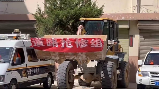 此次演练以模拟定西市通渭县平襄镇发生6.1级地震,导致S207线K81+950M处沿川儿段道路高边坡严重塌方,造成道路中断,需要增援抢通为背景。市交通运输局在接到市抗震救灾应急指挥部的指令后高度重视、迅速响应,第一时间集结应急人员40名、应急装备60余件、车辆5辆、装载机1台,立即赶赴事发地进行增援。
