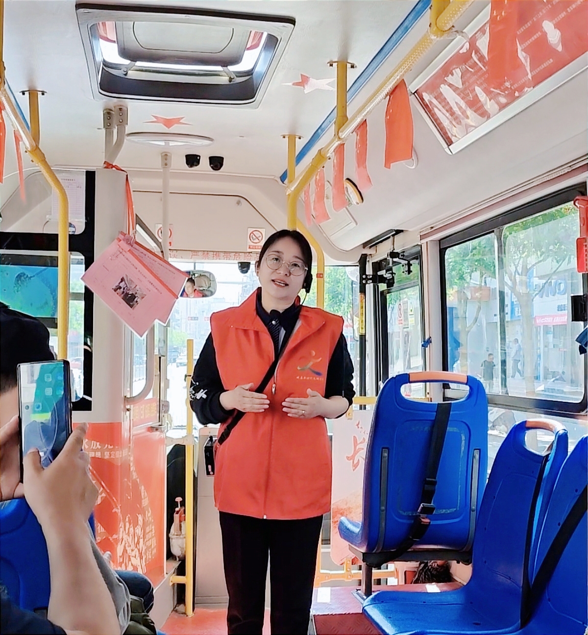6月19日,“红色公交”专线志愿者龙冬梅正在为游客讲解岷县的红色历史。 与此同时,“红色公交”专线的持续运行,进一步挖掘了沿途红色文化、历史文化和旅游资源等元素,赋予了“红色传承”线路更多文化内涵和特色亮点,它不仅串联起了中共中央西北局岷州会议纪念馆、天泉山、秦长城西首起地等景点和人文历史遗迹,更是促进了沿线旅游的发展,有效带动了周边农家乐、采摘园等特色产业发展,拓宽了群众致富渠道,为乡村振兴注入了新动能。此外,专线还配备了志愿者为乘客们讲解岷县的红色历史。 “‘红色公交’专线采用‘常规+定制’模式运营,可根据各单位或社会团体的需求进行个性化预约。”岷县宣传部相关负责人介绍,通过“公交+文化+旅游”的模式,联结沿线红色文化和旅游资源,让乘客在享受优质公交服务的同时随时随地受到红色文化的熏陶和感染,将爱国主义精神根植于心中。
