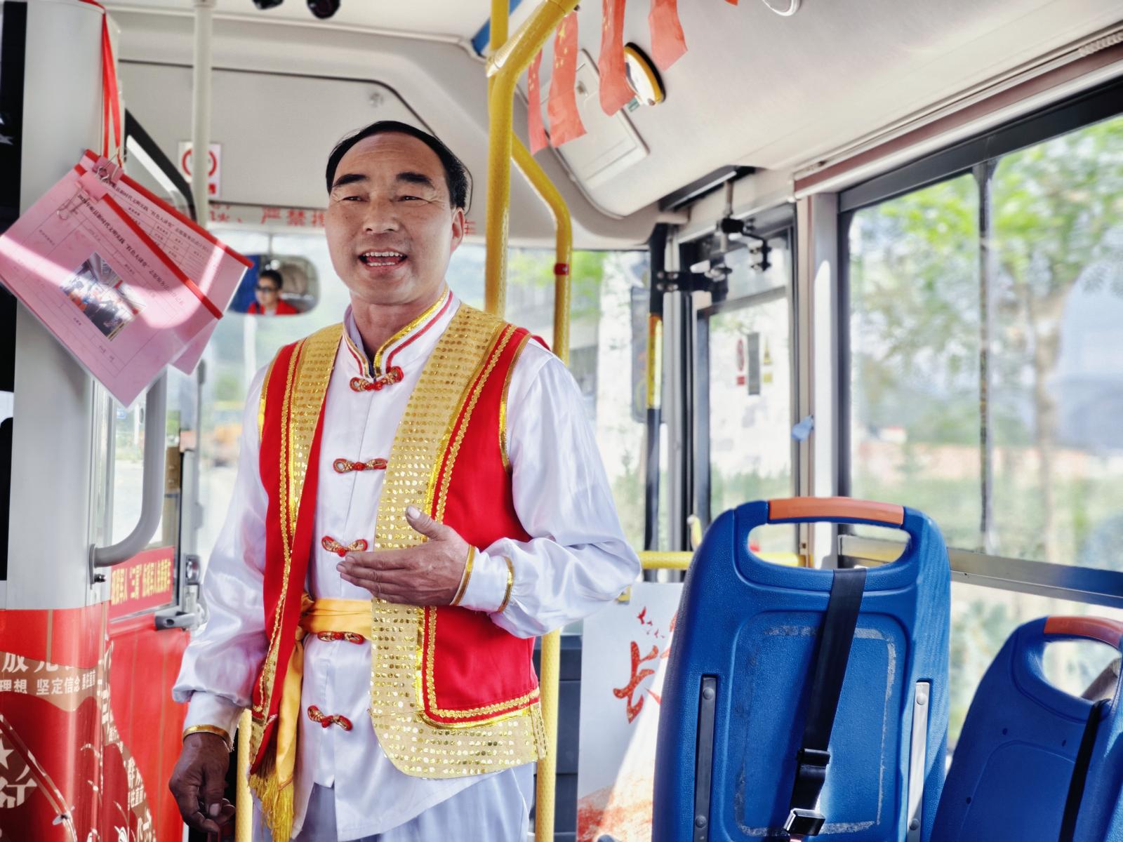 6月19日,岷县花儿协会会长、“红色公交”志愿者杨狗娃为游客唱“洮岷花儿”。 “点赞!每个市民都需要来一趟红色公交之旅。”“这条专线不仅可以欣赏沿途的美丽风景,还能了解到当地的红色历史和非遗文化。”...…岷县“红色公交专线”自“上线”以来,广受市民和游客点赞好评。 岷县历史文化悠久,红色资源厚重。近年来,该县高度重视挖掘保护和传承发扬本土红色文化,立足“让红色精神‘燃’起来、让红色培训‘热’起来、让红旅产业‘强’起来”目标定位,积极探索旅游创新发展模式,将红色文化与长城文化、洮河文化、非遗文化、军马文化等有机融合,创新开发了集“红色研学、观光旅游、休闲度假、民俗体验”为一体的红色公交专线、红色讲堂、古树课堂等沉浸式体验项目,蹚出了一条红色文化引领新时代公民道德建设的新路子。