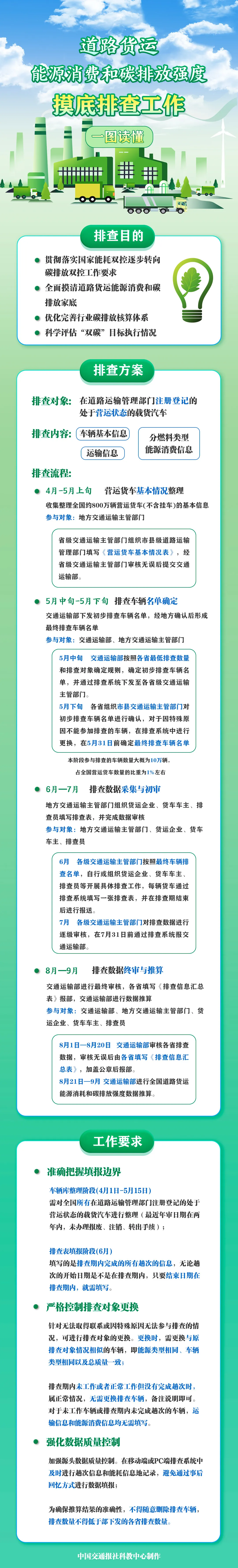 4月1日,交通运输部启动全国道路货运能源消费和碳排放强度摸底排查工作。