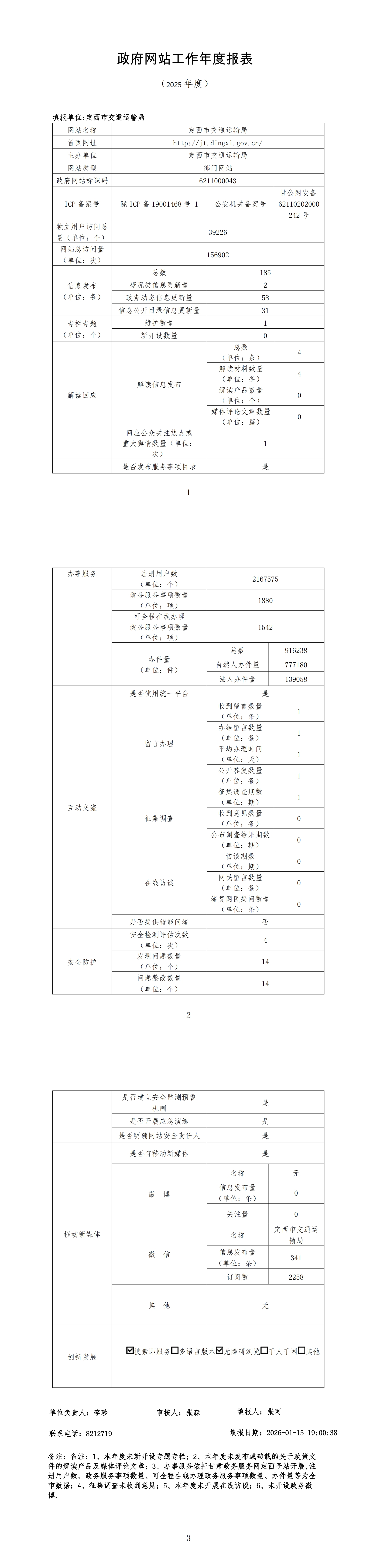 定西市交通运输局2025年政府网站工作年度报表
